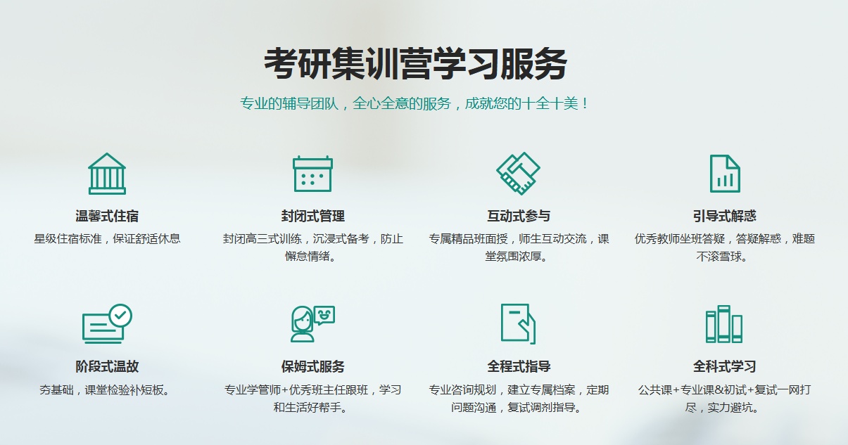 新东方考研集训营课程设置:灵活适配不同需求,课程周期很灵活,从暑期、半年到全年营都有,适合不同备考节奏的同学。科目覆盖公共课和大部分专业课,分层教学,基础弱或想冲刺都能找到合适的班型,适合人群:基础薄弱或跨专业:课程从导学规划开始,逐步夯实基础,还有专业课一对一辅导。自制力差:封闭式管理 统一作息,学管师全程督学,帮你保持学习状态。二战或需突破瓶颈:入学诊断后定制方案,重点突击薄弱环节,避免无效重复。。